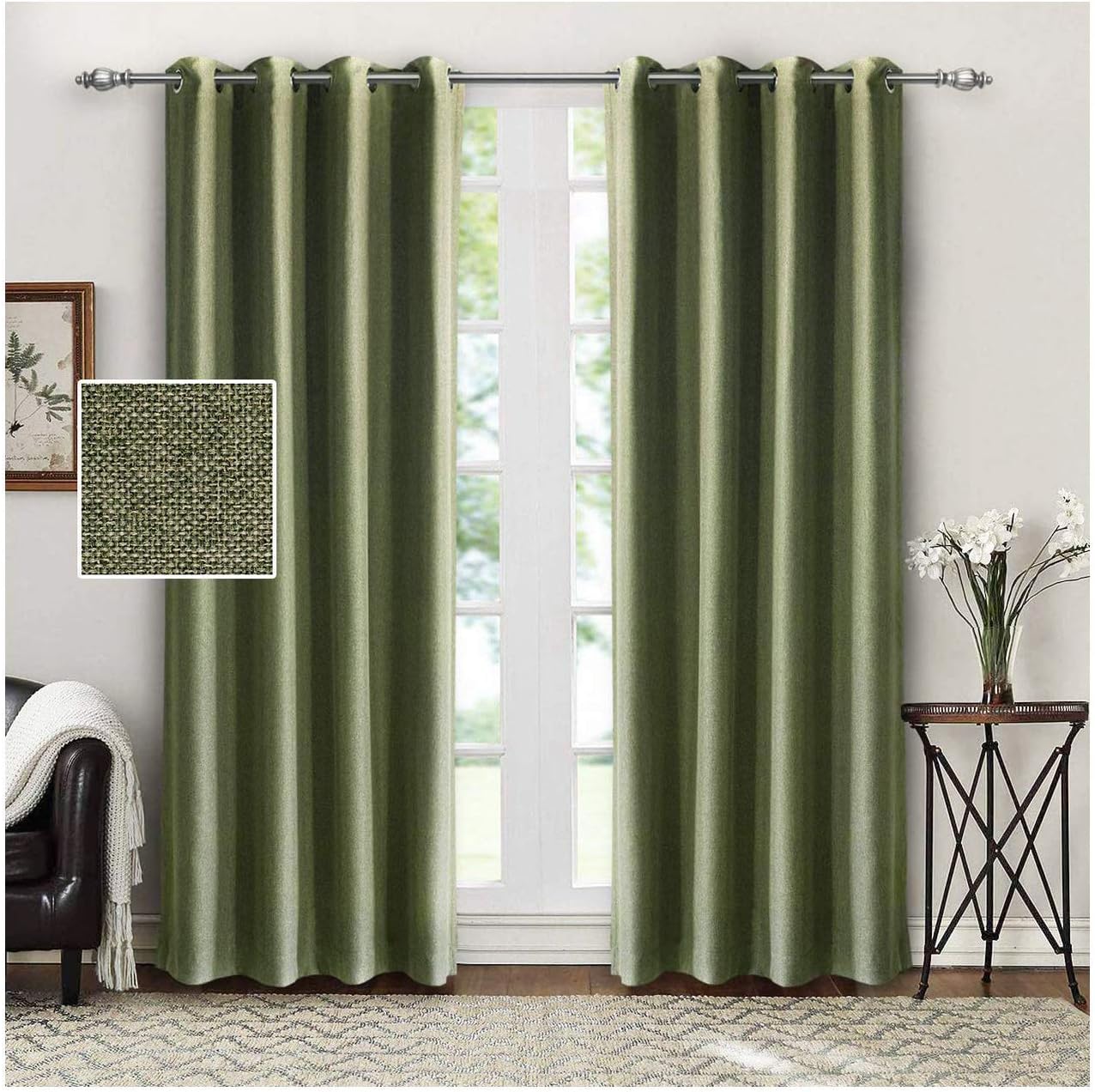 Green Linen Curtains And Drapes For Living Room Set Of 2 Panels