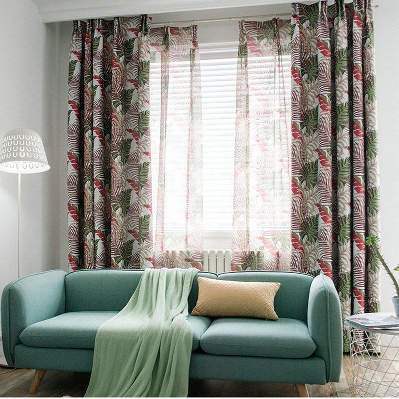Curtains For Living Room Green Leaf Printed Window Curtain Cotton