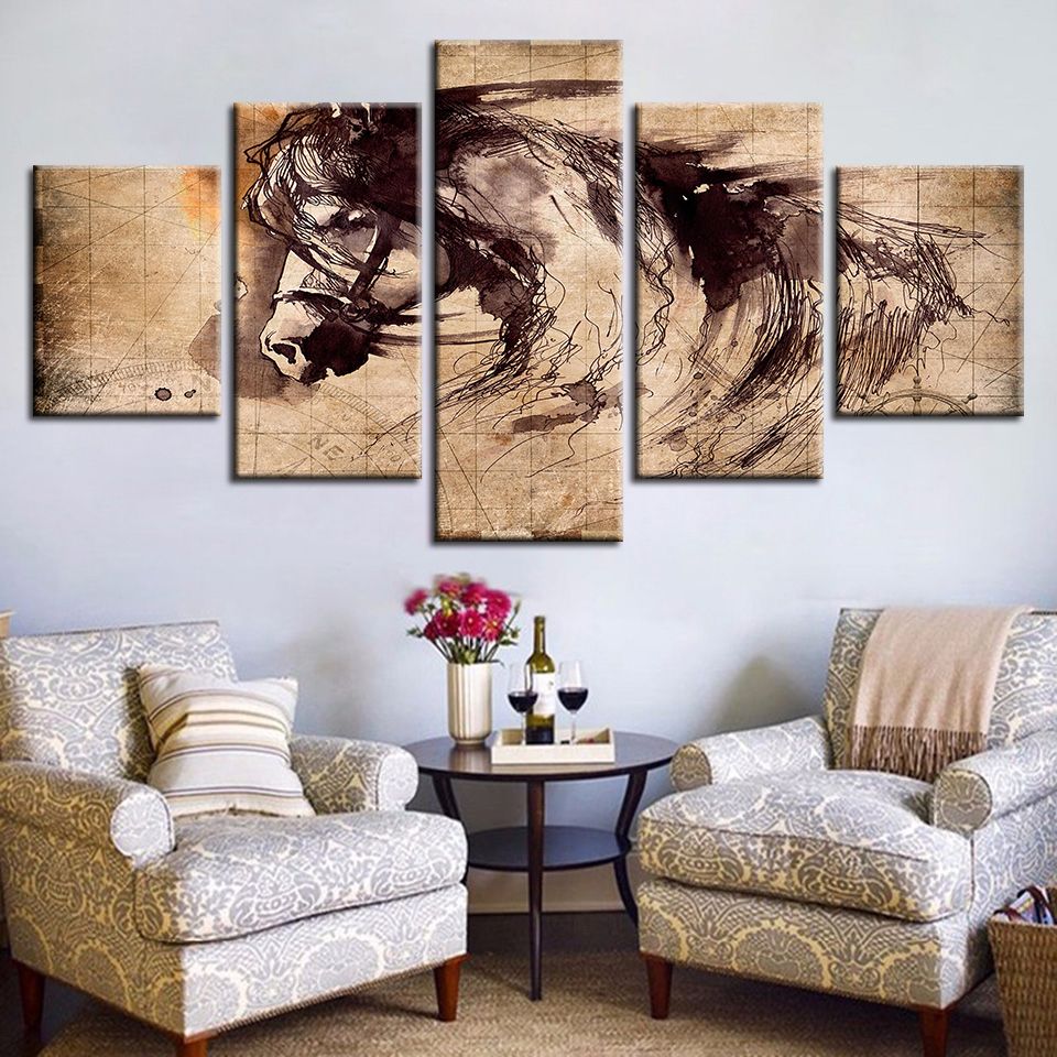 2020 Canvas Pictures Living Room Decor Frame Abstract Horse Animal