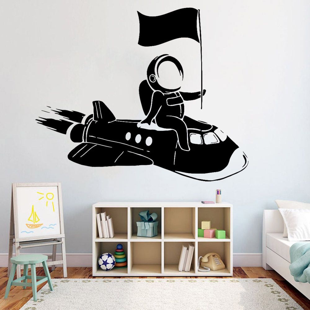 Children Room Wall Decal Flying Space Rocket Universe Vinyl Wall