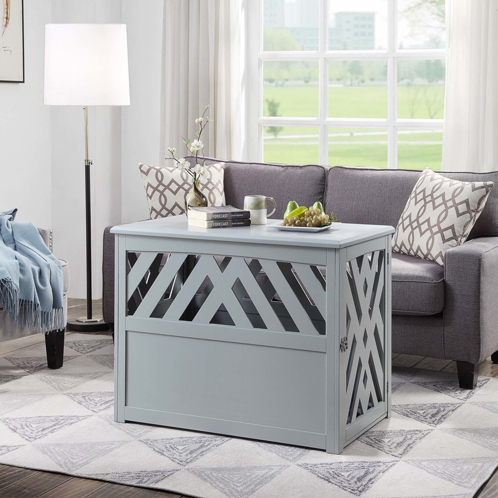 Unipaws Crossed Pet Crate End Table Dog Kennel In Gray 35 5 L X