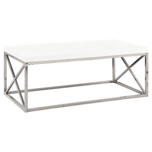 Monarch Glossy White Chrome Contemporary Living Room Coffee Table