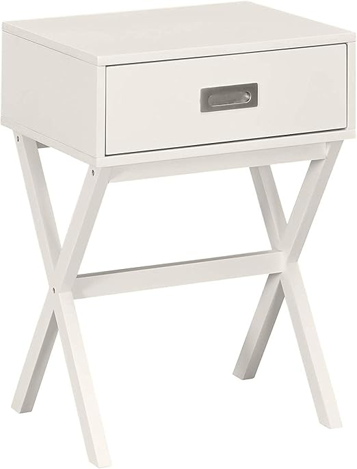 New Kinsuite White Side Table Drawer Storage Shelf Wood End Table