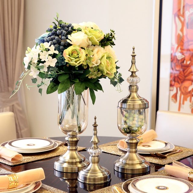 Luxury Metal Glass Vases Sample Room Creative Candlestick Home