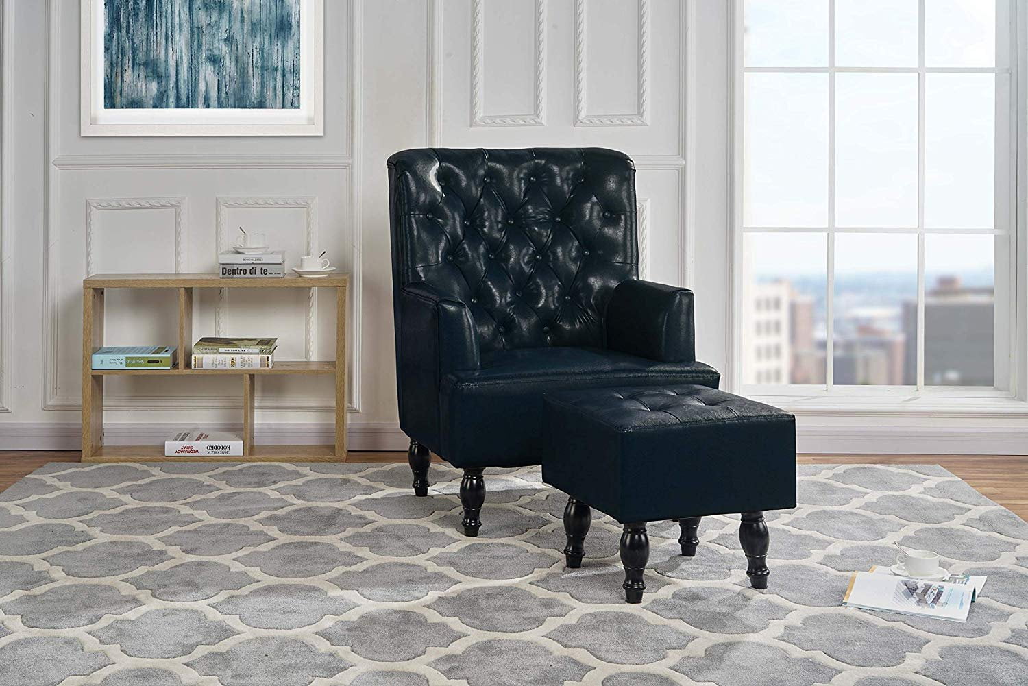 Classic Living Room Tufted Pu Leather Armchair With Foot Rest
