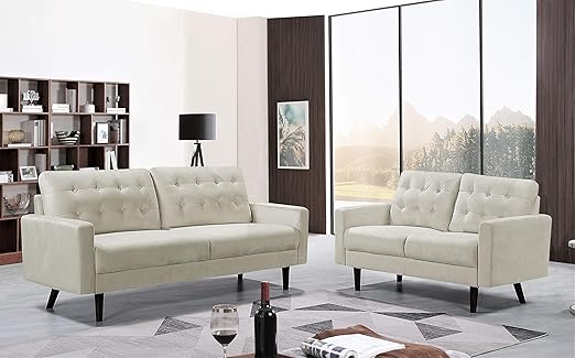 Shop Lacasta Mid Century Modern Tufted Design Cream Living Room