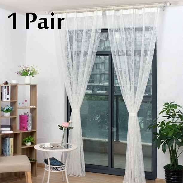 2pcs Transparent Lace Curtain Tulle Window Curtains Drapes Home