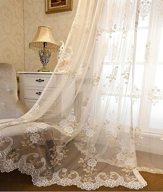 Aifish European Embroidered Beige Sheer Tulle Curtains Lace