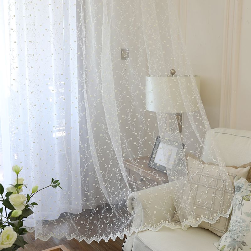 Etry White Pearl Floral Embroidery Curtain Lace Curtains Panel