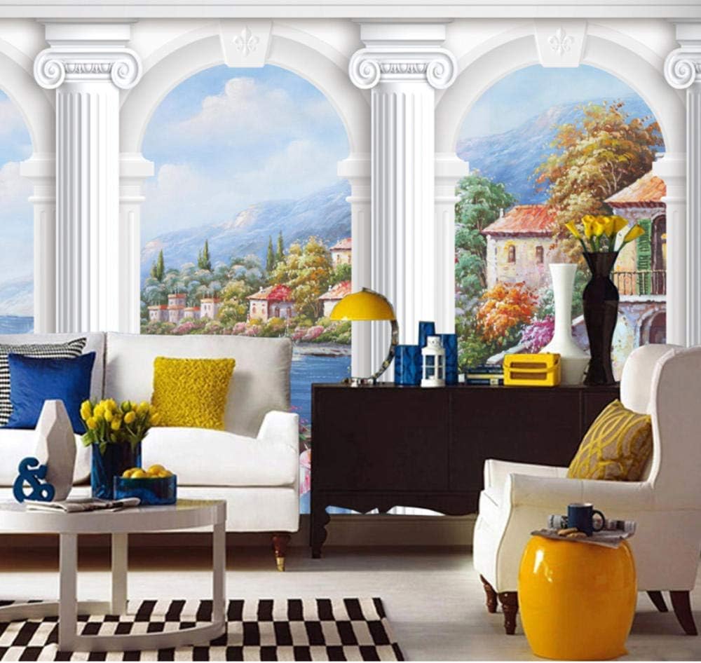 Mural European Vinyl Straw Lines Marble Pillar 3d Wall Murals For