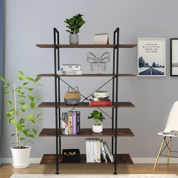 Amazon Com 5 Tier Industrial Bookcase With Rustic Wood And Metal