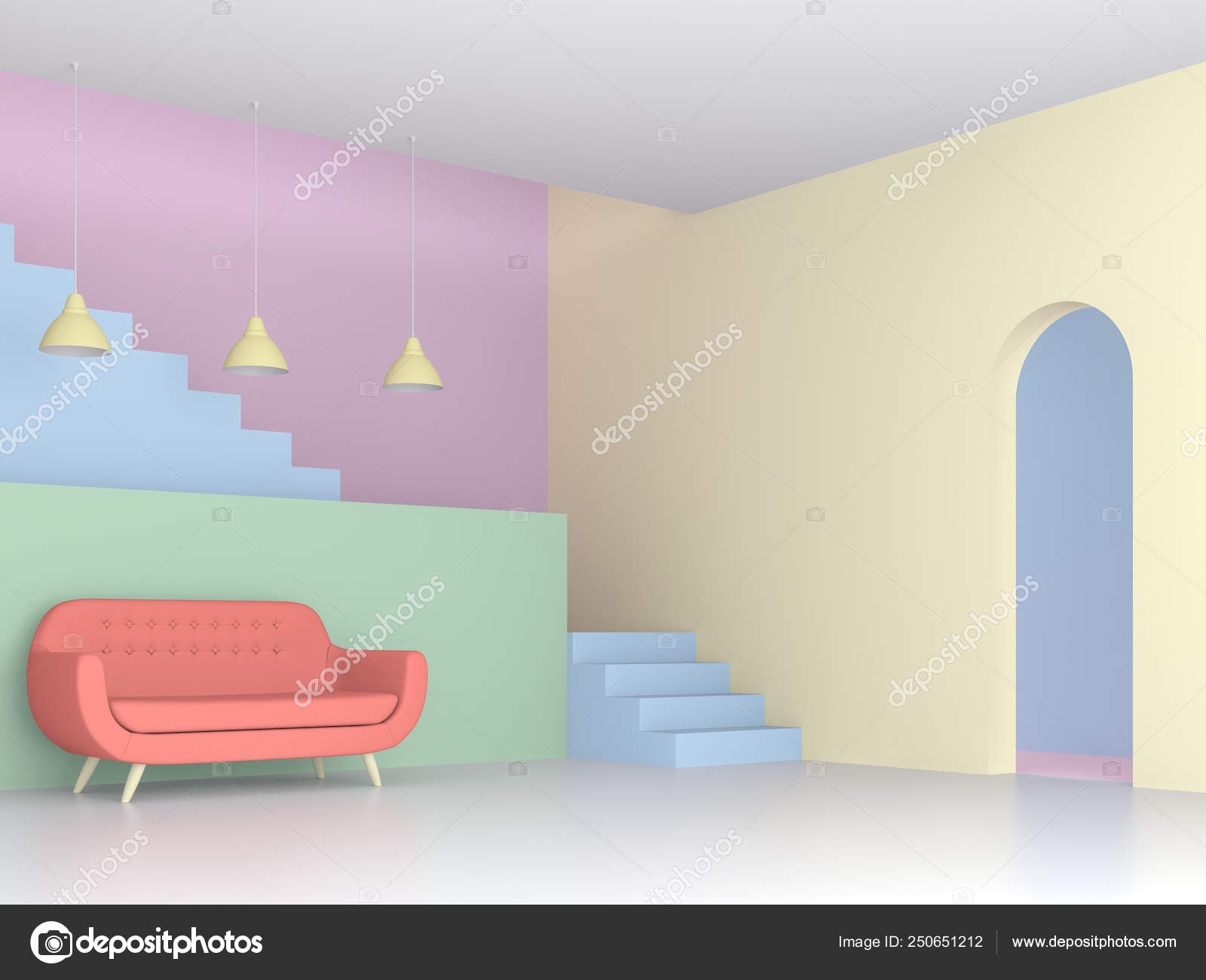 Colorful Living Room With Pastel Color 3d Rendering Image There