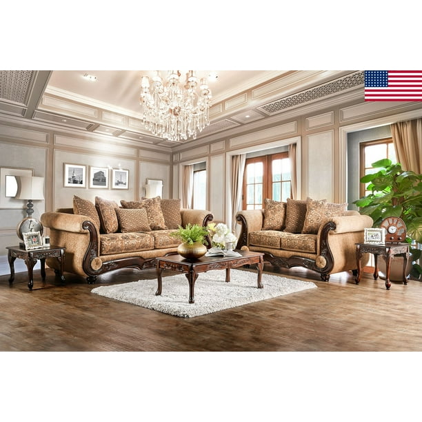 Traditional Living Room Furniture 2pc Sofa Set Gold Bronze Sofa