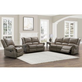 Abbyson Giorgio 3 Pc Top Grain Leather Reclining Sofa Set Bjs