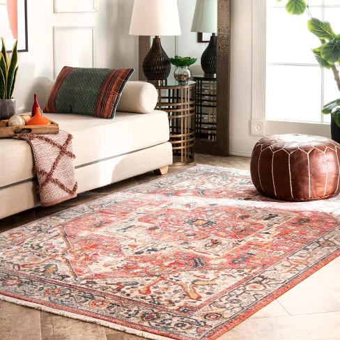 Nuloom Vintage Harriet Medallion Fringe Area Rug Orange 8 10