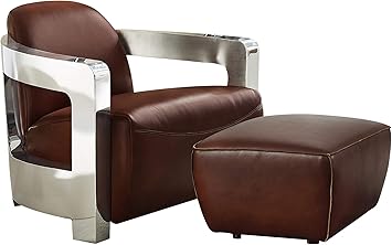 Amazon Com Sunset Trading Milan 2 Piece Leather Living Room Set Aviator Chair With Chrome Arms Ottoman Deep Seating Brown Kitchen Dining