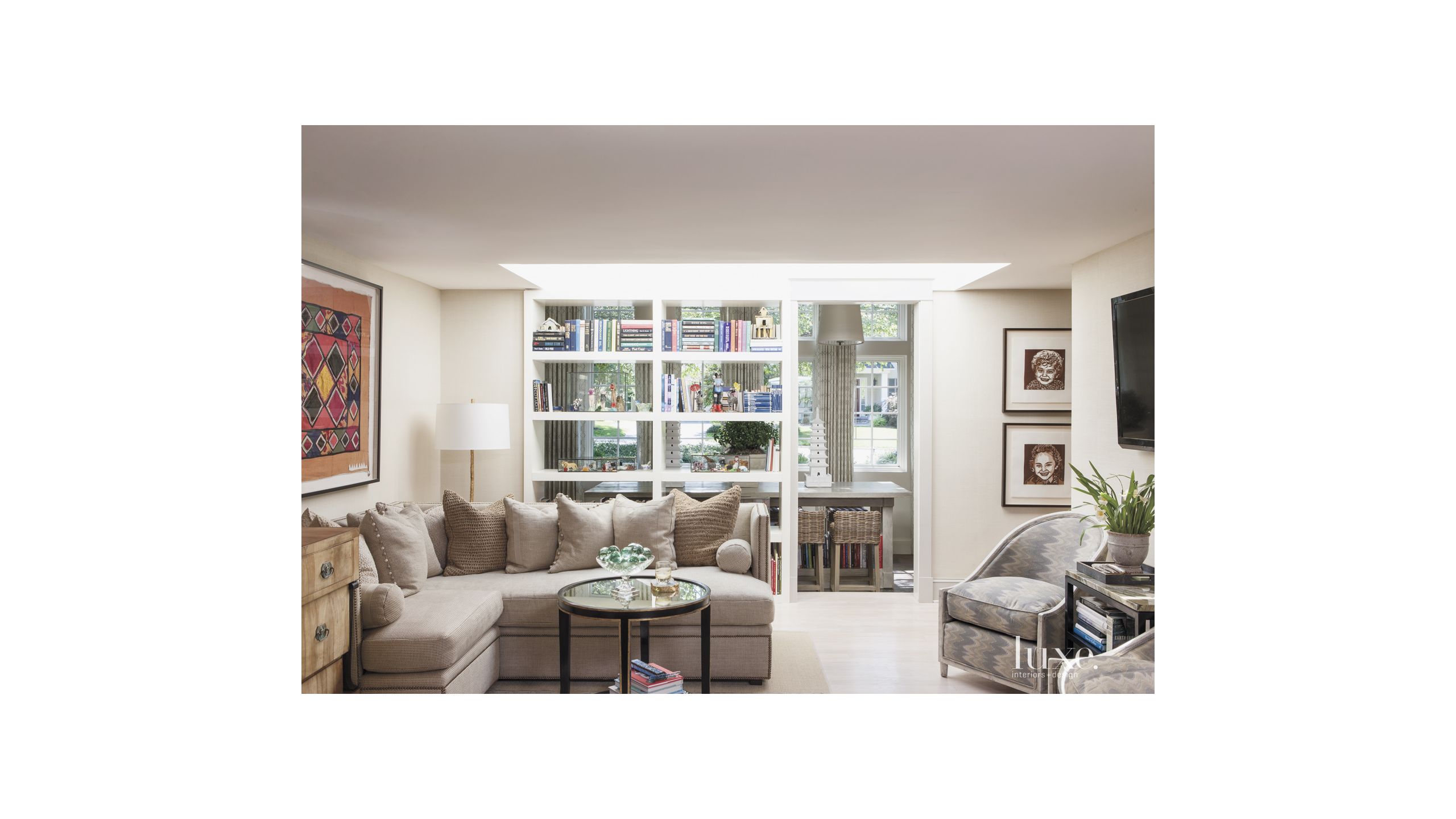 Eclectic White Living Room With Skylight Luxe Interiors Design