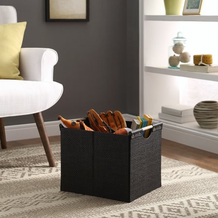 Better Homes Gardens Black Weave Storage Bin With Wood Handle S