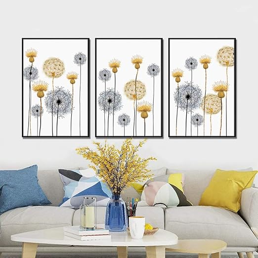 Amazon Com 3 Panel Canvas Wall Art Dandelion Painting Print