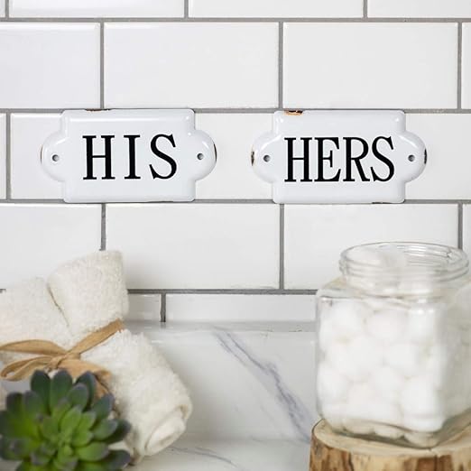 Amazon Com Vipssci Set Of 2 His Hers Wall Plaques White Enamel Wall Signs Bedroom Bathroom Art Home Kitchen