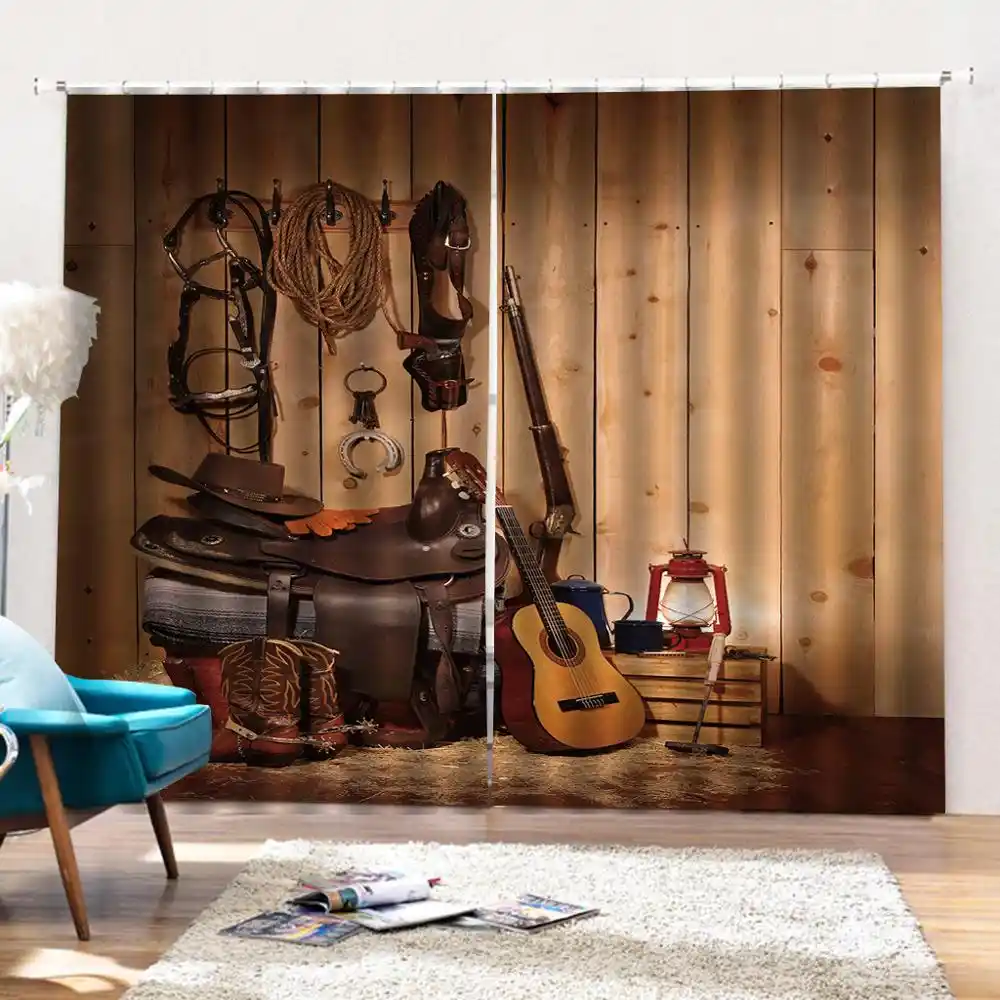 2020 Custom 3d Curtain Western Decor Old Leather Boots And Spurs