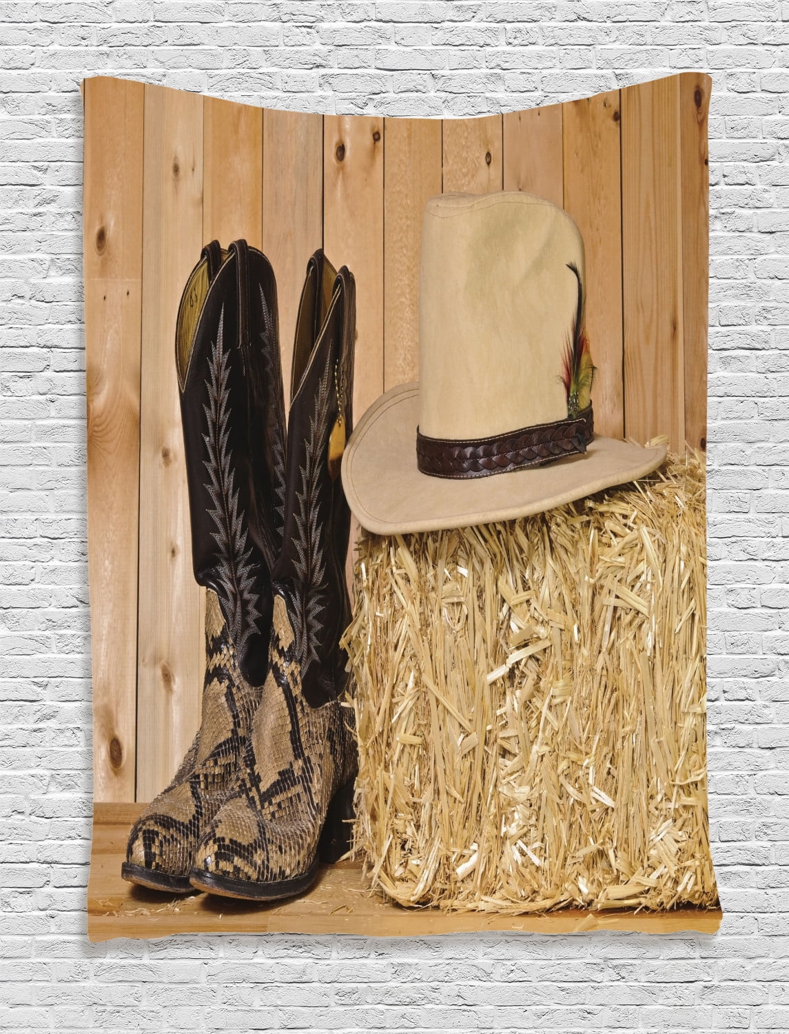 Western Decor Tapestry Snake Skin Cowboy Boots Timber Planks In