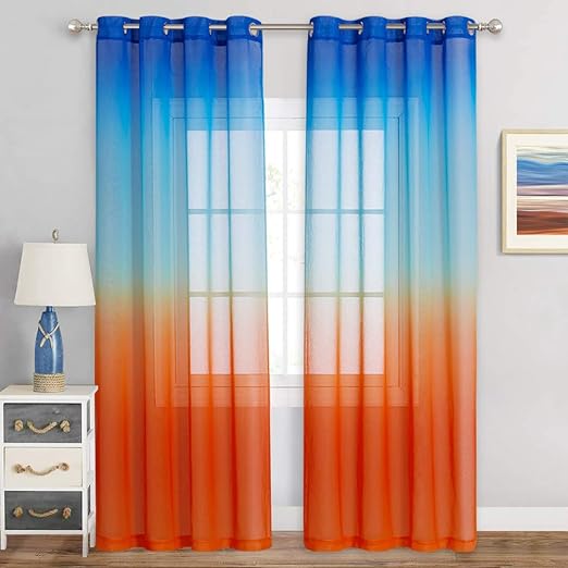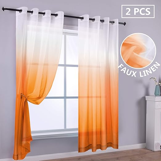Amazon Com Orange Curtains 84 Inch Length For Living Room Decor Set 2 Panels Rod Pocket Window Drape Sheer Ombre Bright Curtains For Dining Room Kitchen Girls Kids Boys Bedroom 84in Long Burnt