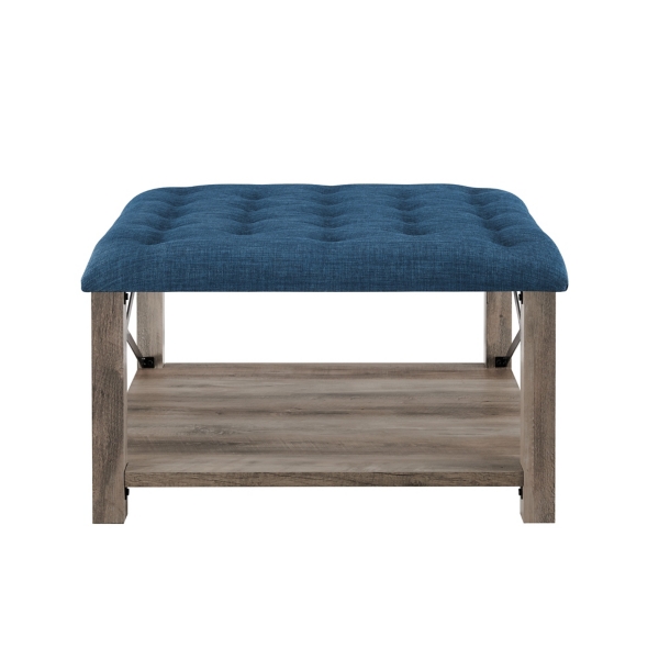 Welwick Designs 30 In Blue Farmhouse Tufted Ottoman Hd8314 The