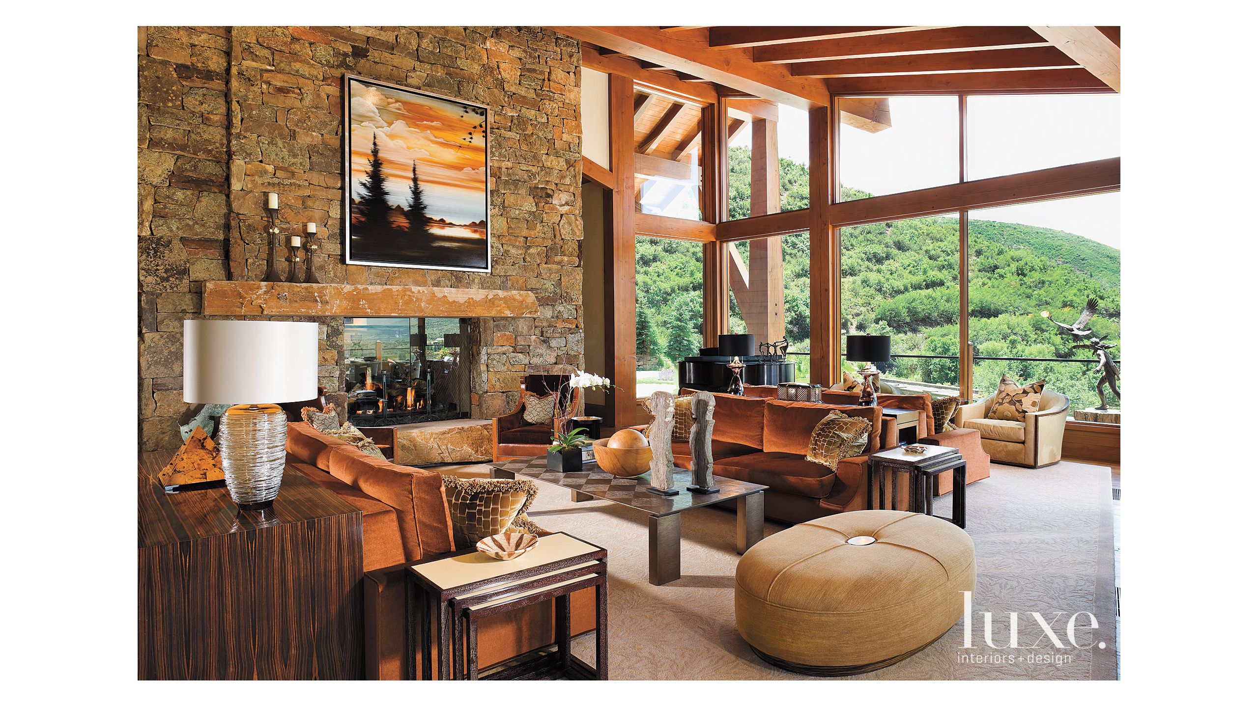Mountain Neutral Living Room With Wood Beams Luxe Interiors Design