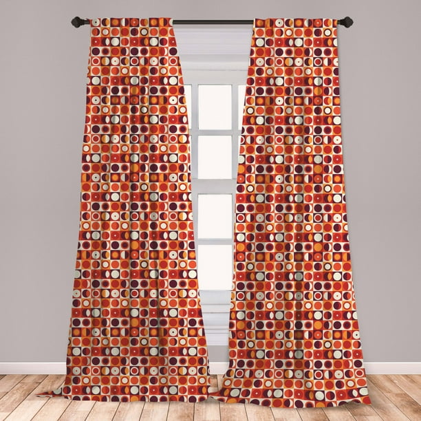 Geometric Curtains 2 Panels Set Vintage Sixties Circles With