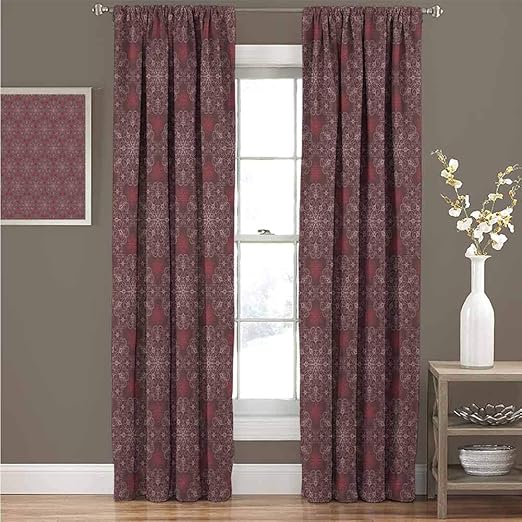 Maroon Living Room Curtain Panels Pair Cotton Fabric Mandala