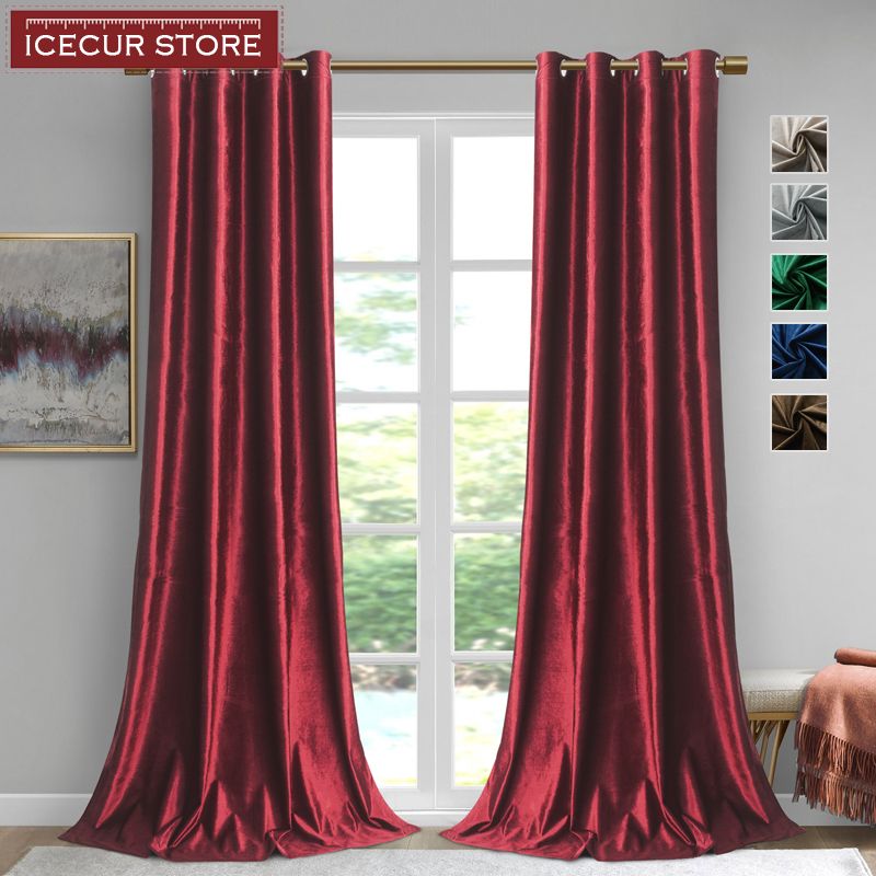 2020 Icecur Shiny Velvet Curtains For Living Room Bedroom Solid