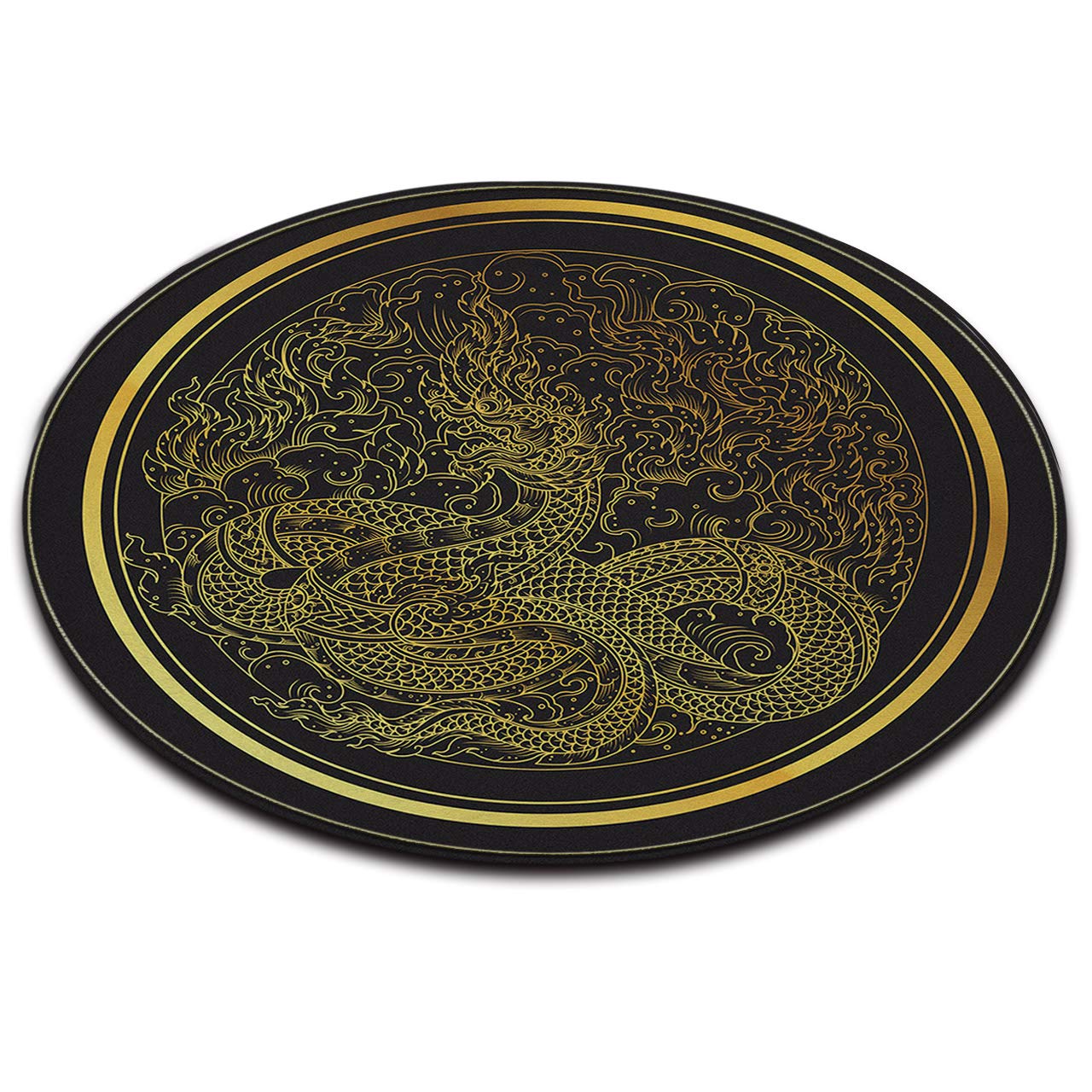 Lb Chinese Style Dragon Area Rug Black Gold Print Round Memory