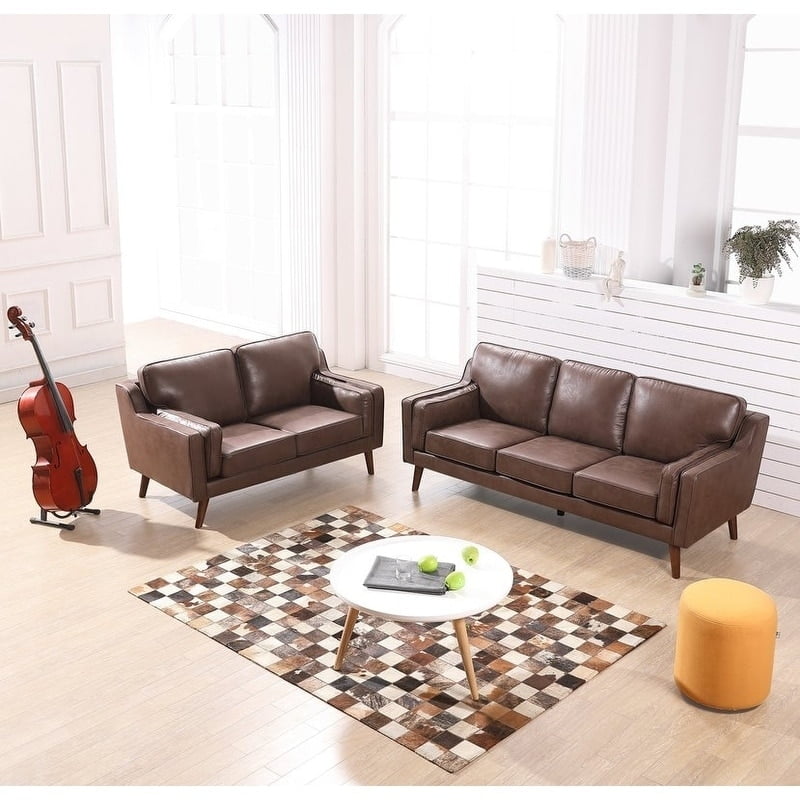 Us Pride Furniture Whaley Mid Century Piece Leather Living Room Set Brown Walmart Com Walmart Com