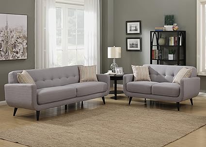 Amazon Com Ac Pacific Crystal Collection Upholstered Gray Mid Century 2 Piece Living Room Set With Tufted Sofa And