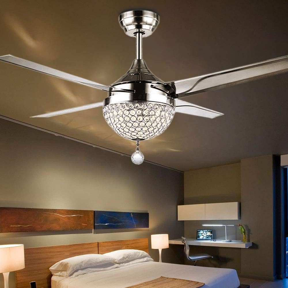 Tiptonlight Modern Ceiling Fans With Light Remote Control Crystal