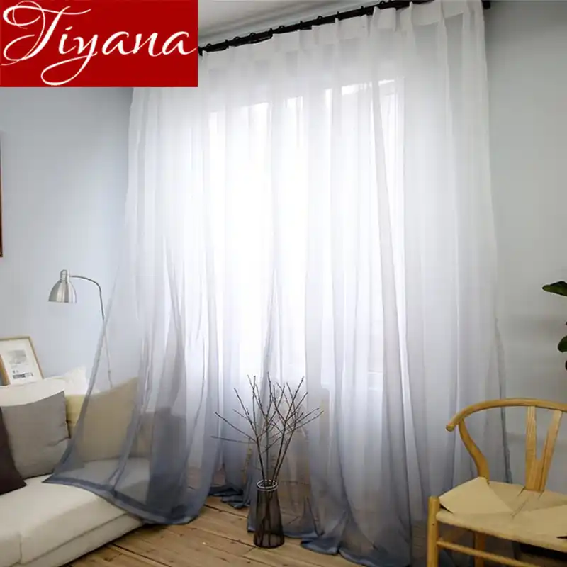 Curtains Gradient Color Print Voile Gray Window Modern Living Room