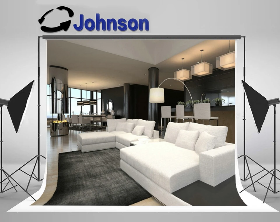 Laeacco Modern Living Room Fireplace Sofa Carpet Light Interior