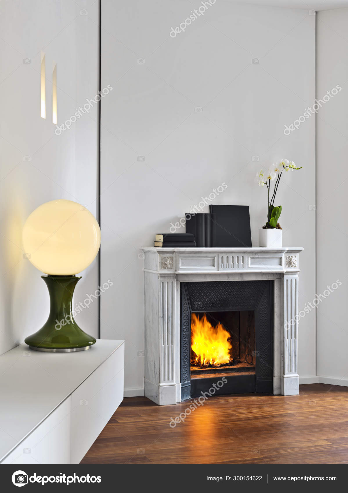 Fireplace In Modern Livingroom Stock Photo Dissolve