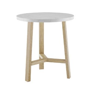 20 Round Y Leg Side Table With Wood And Laminate White Light Oak