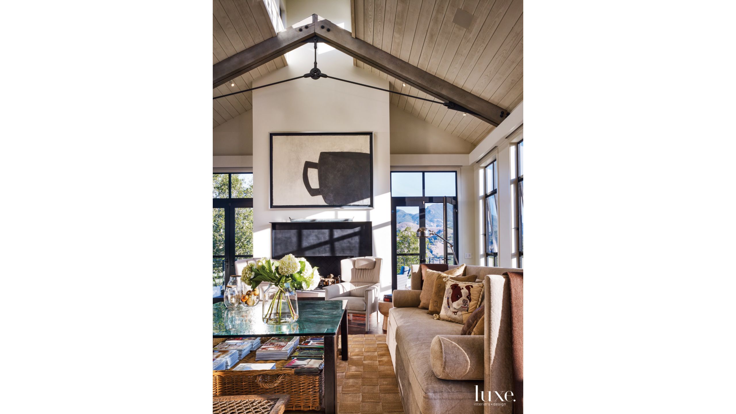 Modern Neutral Living Room With Steel Trusses Luxe Interiors