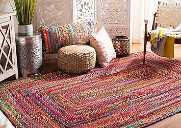 Amazon Com Ilunar Rectangle Braided Hand Woven Cotton Vibrant Red