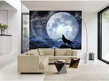 Amazon Com Mural Customized 3d Photo Wallpaper Wolf Full Moon
