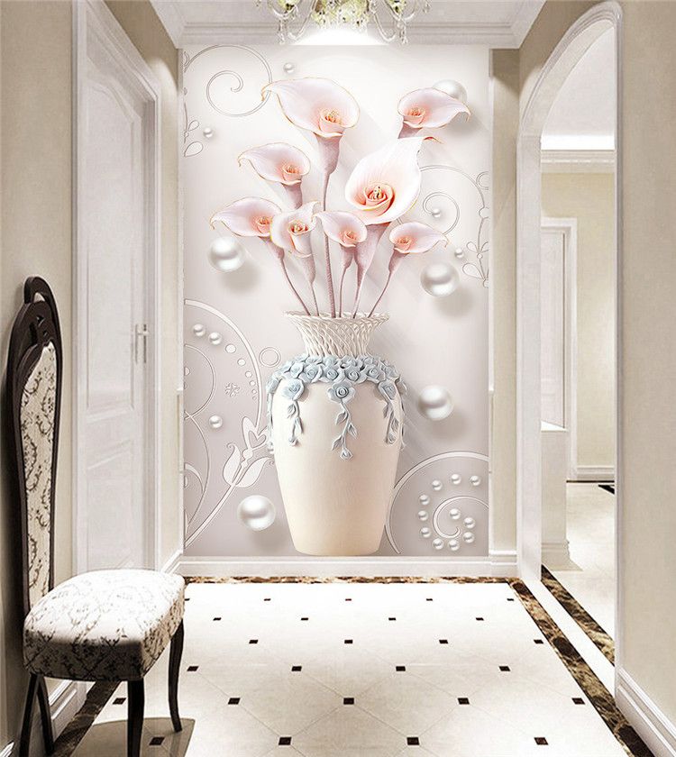 3d Vase Lily Floral Wall Paper Murals Living Room Entrance Wall