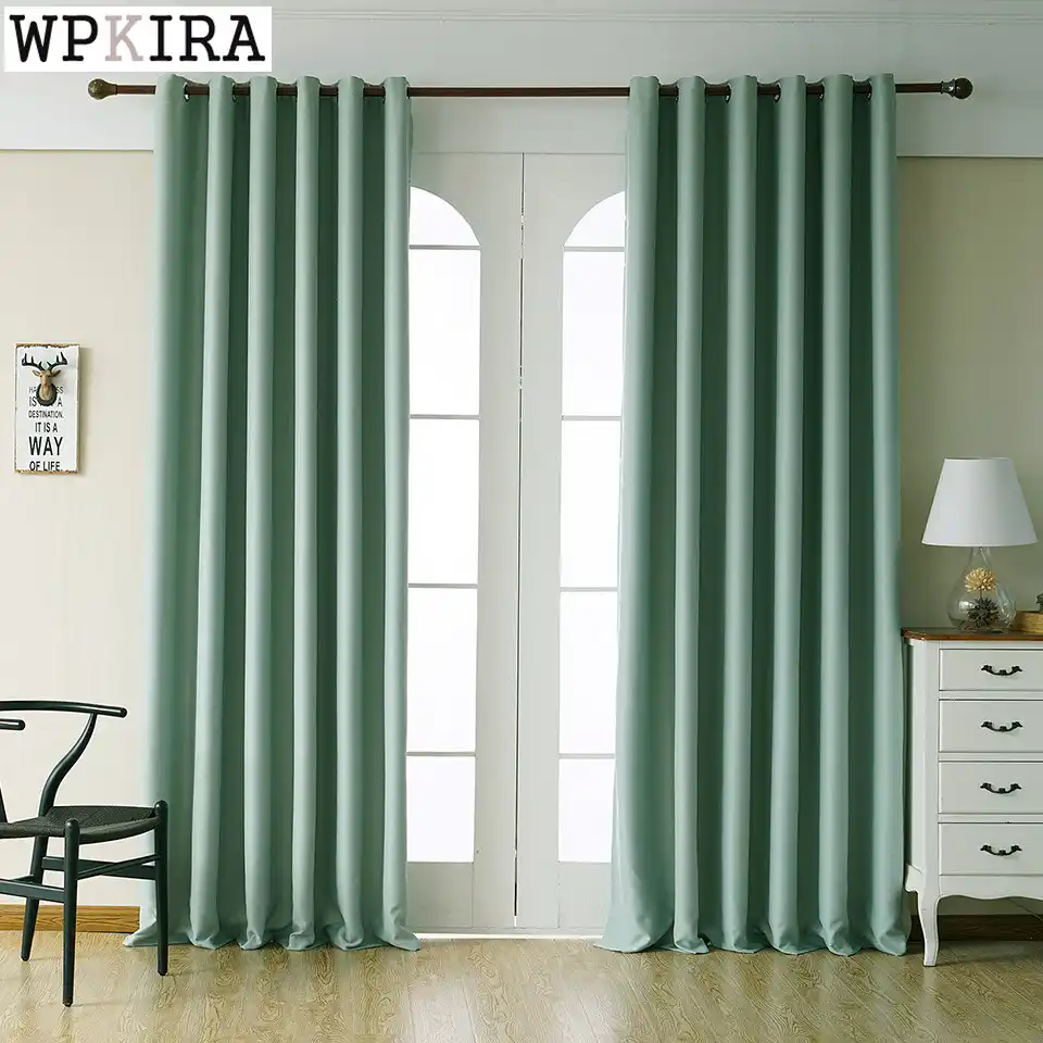 Green Color Polyester Solid Curtains For Living Room Navy Blue
