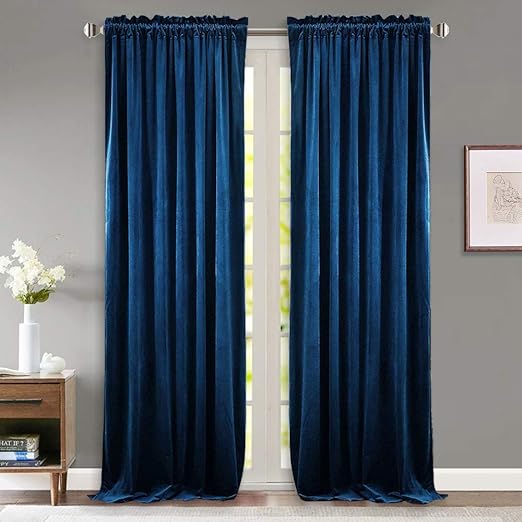 Amazon Com Stangh Luxury Navy Blue Velvet Curtains Living Room