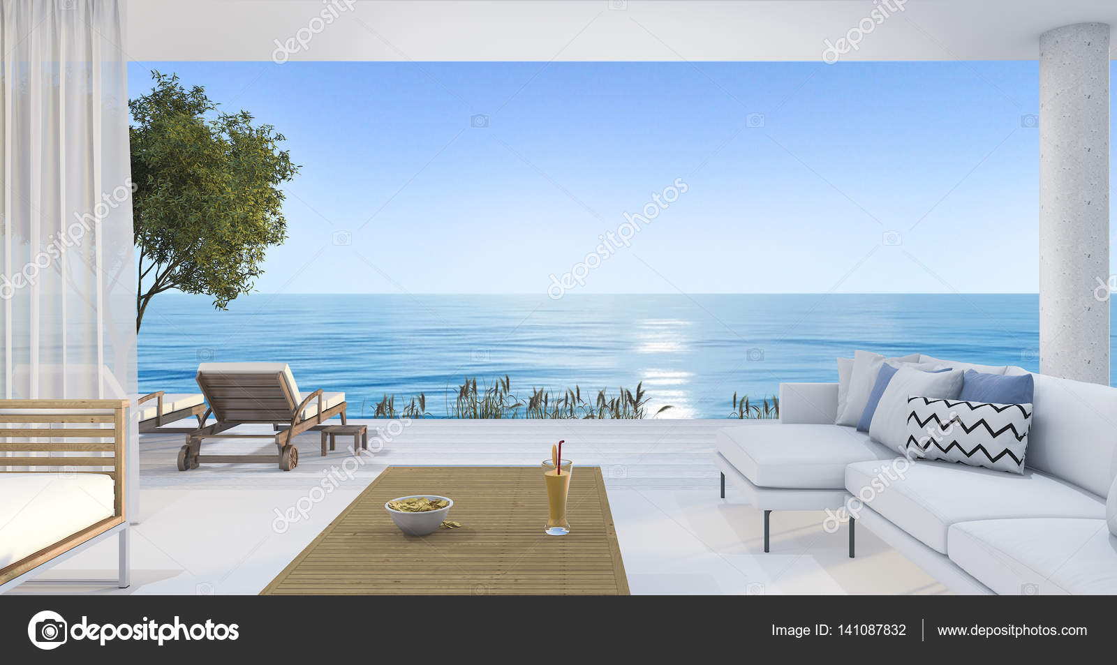 3d Rendering Contemporary Nice Living Room Near Beach And Blue Sky