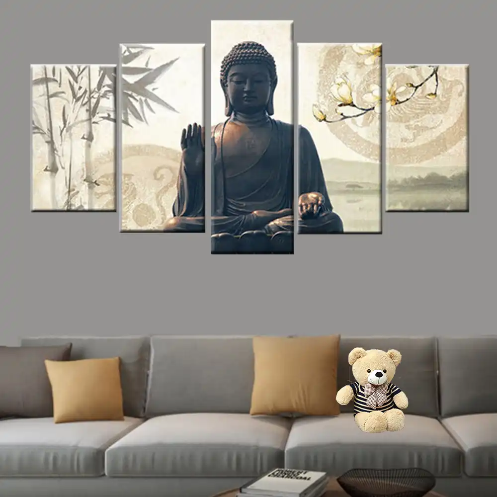 5 Panel Buddha Statue Poster Wall Art Living Room Modern Home