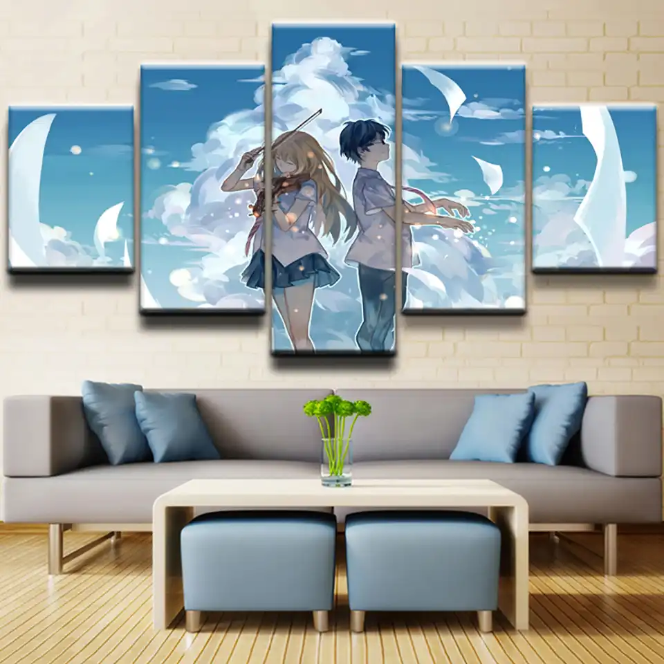 Frame Living Room Hd Printed Painting Art Pictures 5 Panel Anime