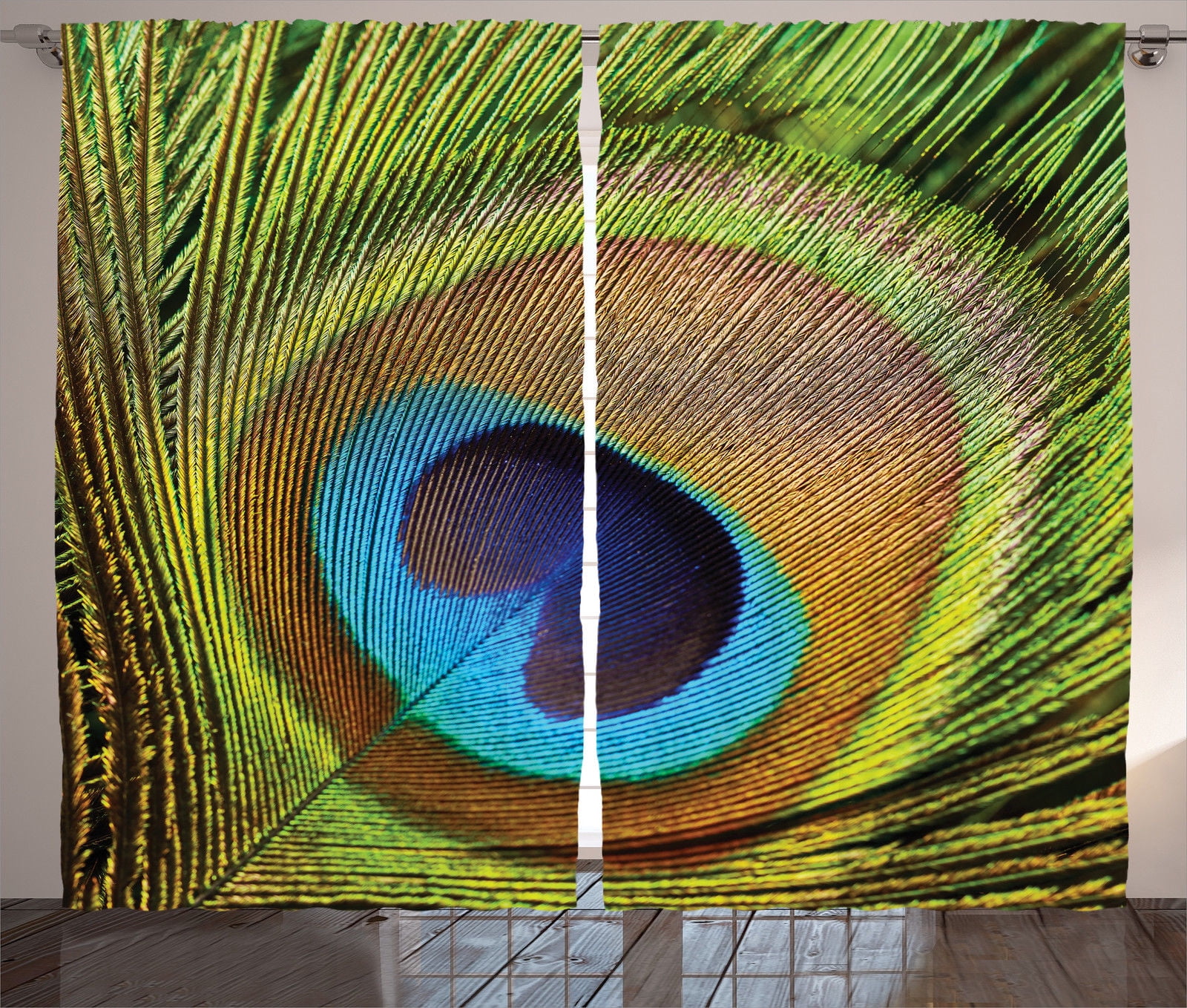 Peacock Decor Curtains 2 Panels Set Peacock Feather With Eye